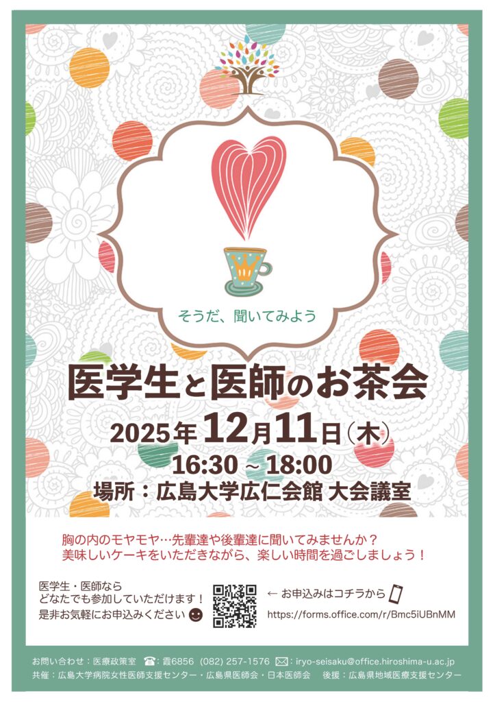 申込はコチラ → 【12/11(木) 16:30~ 開催】 医学生と医師のお茶会・参加申込みフォーム – フォームに記入する